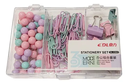 Set De Escritorio Clips, Chinche Señalador, Aprieta Papel